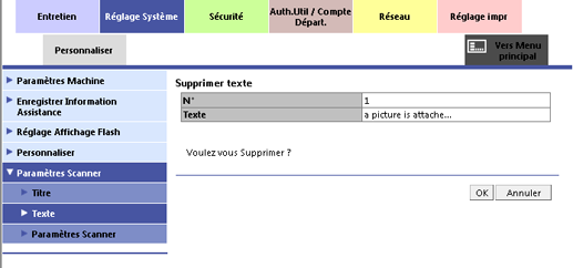 Pour afficher cet écran, cliquez sur [Paramètres Scanner] - [Texte] dans le menu de l'onglet [Configuration système].
