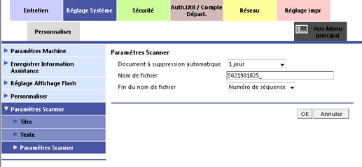Pour afficher cet écran, cliquez sur [Paramètres Scanner] - [Paramètres Scanner] dans le menu de l'onglet [Configuration système].