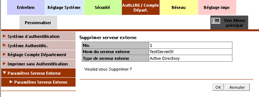 Cliquez sur le bouton [Supprimer] d serveur d'authentification externe à supprimer.
