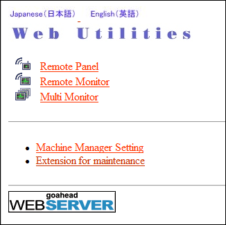 Les utilitaires Web permettent la gestion du périphérique intégré à la machine. Il permet d'utiliser le navigateur d'un ordinateur en réseau pour contrôler à distance le panneau de contrôle principal ou surveiller l'état de la machine.