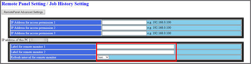 L'écran [Remote Panel Setting/Job History Setting] s'affiche.