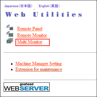 L'état de la machine, l'écran tactile et la condition des tâches de 10 machines max. sont affichés en mosaïque dans la fenêtre du navigateur Web. Le panneau distant est également affiché dans la même fenêtre du navigateur.