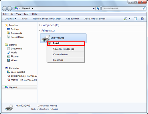 Faites un clic droit sur l'icône représentant la machine et sélectionnez [Installer].