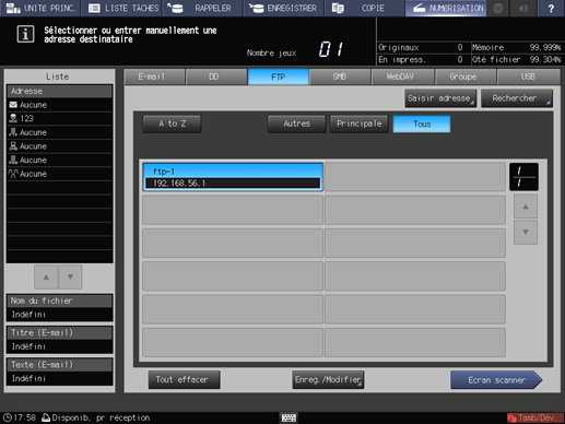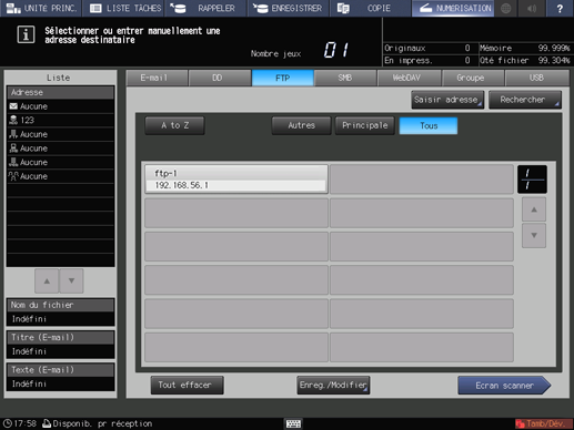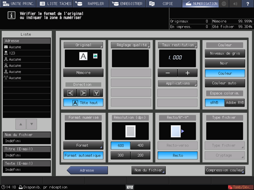 Pour revenir à l'écran [NUMERISER], appuyez sur [Adresse].