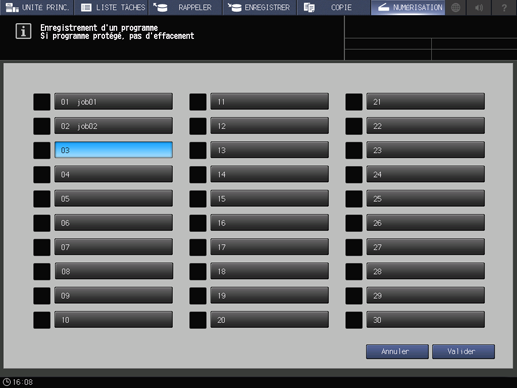 Vous pouvez enregistrer un maximum de 30 programmes de numérisation.