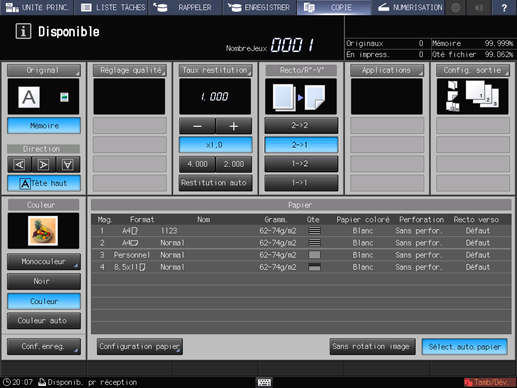 Pour en savoir plus sur le réglage du sens de reliure d'originaux recto-verso, voir Sens Reliure : sélection du sens de reliure d'un original recto-verso.