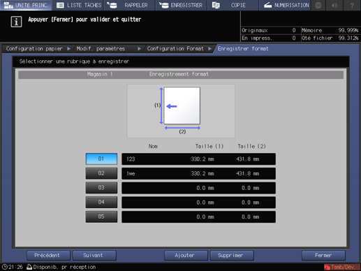 Lorsque vous avez entré la valeur, appuyez sur [Enregistrer]. L'écran [Enregistrer format] s'affiche.