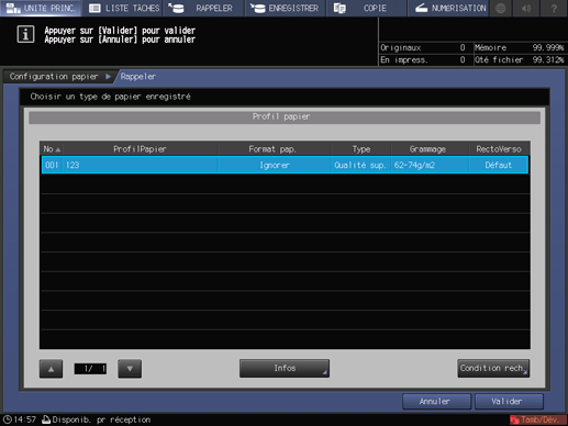 Une pression sur [Rechercher] vous permet de rechercher le profil papier enregistré dans la configuration papier actuellement affichée.