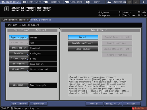 Pour appliquer les conditions papier sans les enregistrer, appuyez sur [Valider]. Passez à l'étape 30.