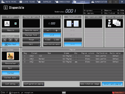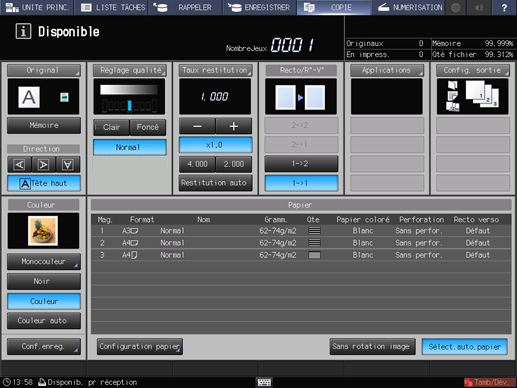 Si les éléments Réglage qualité et Raccourci sont définis, leurs réglages sont affichés sous [Réglage qualité] sur l'écran [COPIER].