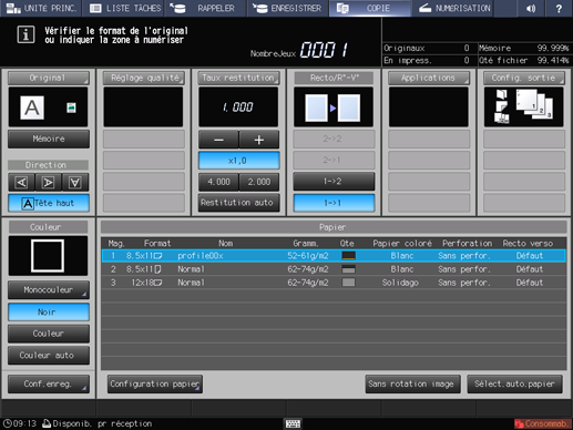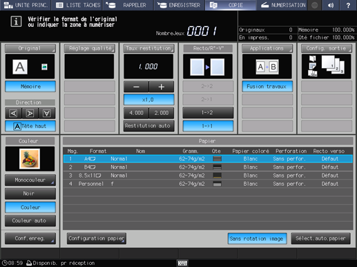 Les réglages magasin peuvent être spécifiés individuellement pour chaque tâche et à ce titre le format papier peut être modifié pour chaque tâche.