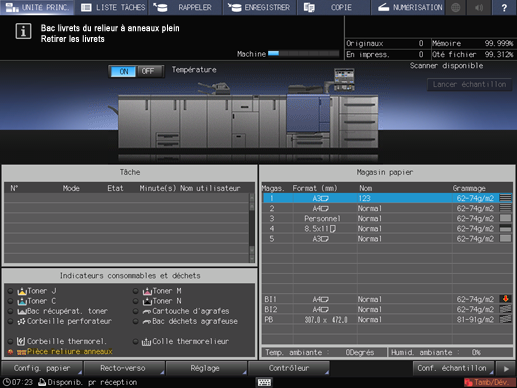 Lorsque le bac Livret est plein, le message suivant apparaît dans la zone de messages de l'écran.
