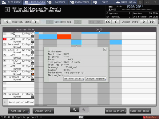 Le dialogue d'opération et le dialogue de configuration papier de la barre de la tâche sélectionnée s'affiche.