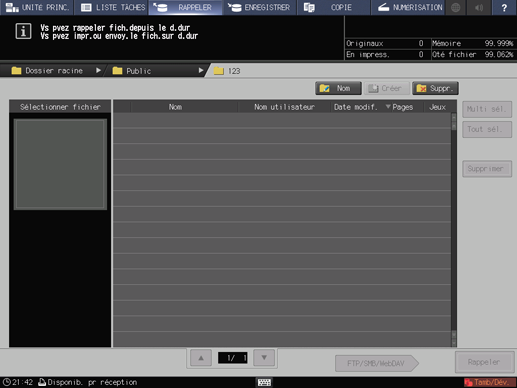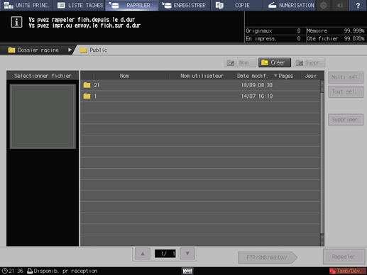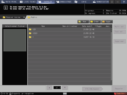 Un dossier public est créé par défaut au départ usine dans le dossier racine. Vous ne pouvez pas supprimer des dossiers publics.