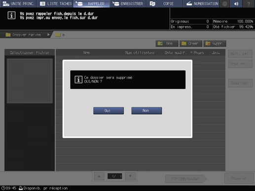 Supprimez toutes les boîtes et tâches du dossier et appuyez sur [Suppr.].