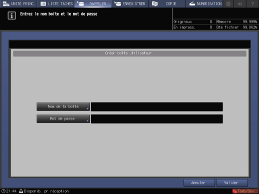 Entrez un nom de boîte et un mot de passe (facultatif), puis appuyez sur [Valider].
