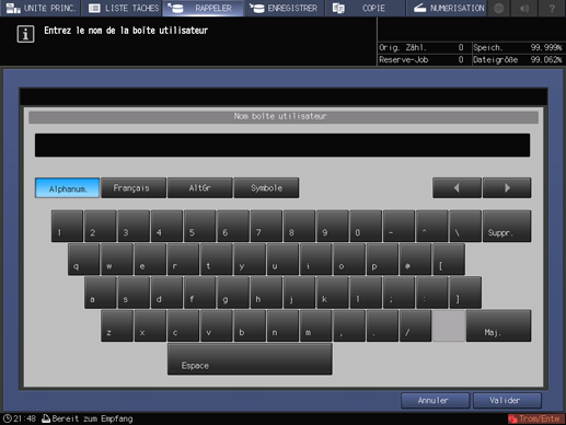 Saisissez un nouveau nom de boîte et appuyez sur [Valider].