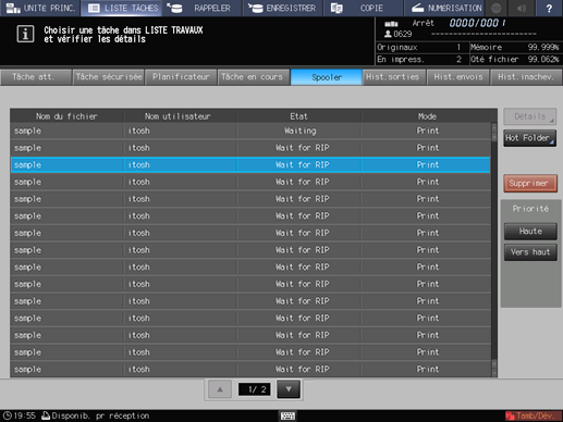 Appuyez sur [LISTE TÂCHES], puis sur [Spooler].