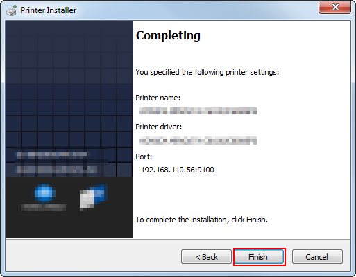 Entrez le nom d'imprimante ou l'adresse IP et cliquez sur [Suivant].