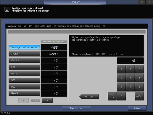 Appuyez sur [Retour réglage] pour revenir à l'écran [Réglage pas pliage&agrafage].
