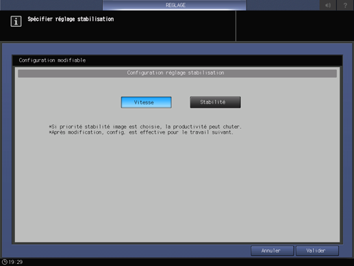 Pour sélectionner la priorité, appuyez sur [Vitesse] ou [Stabilité].