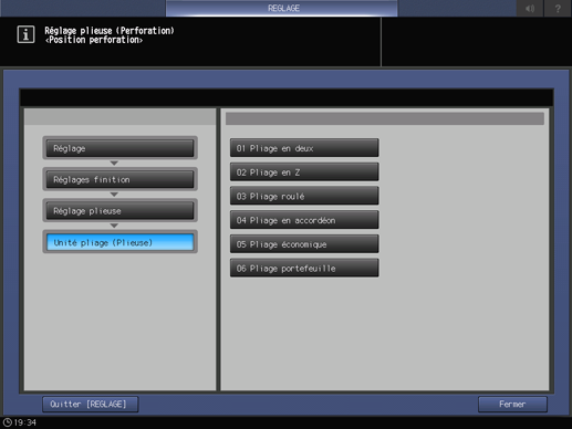 L'écran [Menu Réglage Unité pliage (Plieuse)] réapparaît.