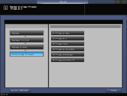 L'écran [Menu Réglage Unité pliage (Plieuse)] réapparaît.