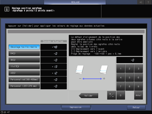 L'écran [Menu réglage position centre agrafage] réapparaît.