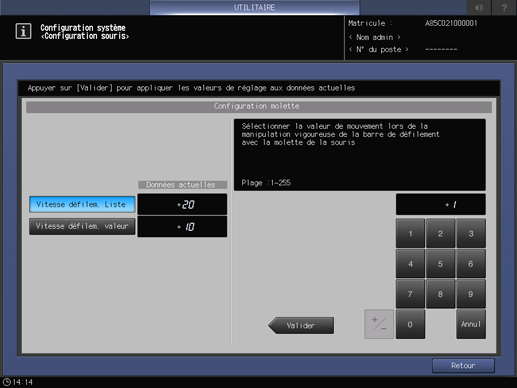 Appuyez sur [Valider] pour revenir à l'écran [Configuration souris].