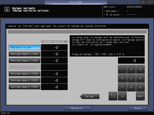 Cette opération est la même que celle effectuée dans [Réglage] - [Réglage machine] - [Réglages imprimante] - [Restitution verticale], accessible sur l'écran [MACHINE].