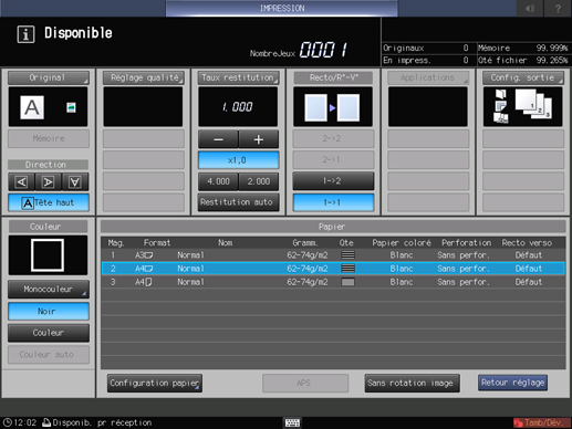 Sélectionnez le papier A3 et appuyez sur la touche Départ du panneau de contrôle.