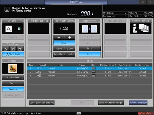 Sélectionnez le papier A4 et appuyez sur la touche Départ du panneau de contrôle.