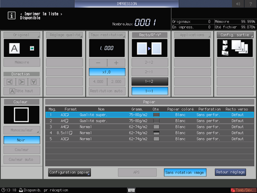 Utilisez cette fonction pour imprimer la liste sélectionnée parmi les rubriques suivantes.