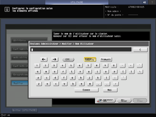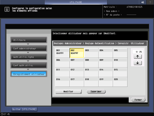 Sélectionnez le bouton N° utilisateur non enregistré et appuyez sur [Modifier].
