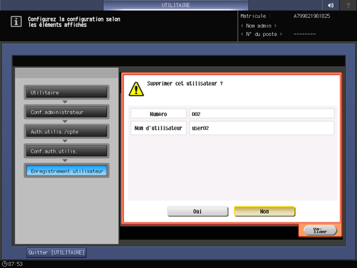 Appuyez sur [Oui] dans le dialogue de confirmation pour le supprimer et appuyez sur [Valider] pour confirmation. Ou appuyez sur [Non] pour annuler la suppression.