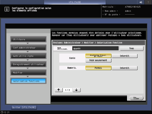 Sélectionnez [Autorisation fonctions].