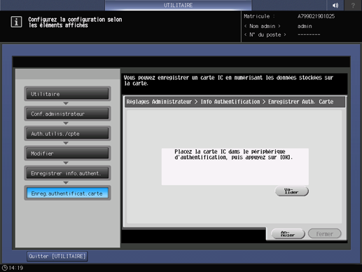 Appuyez sur [Enregistrer info.authent.] pour enregistrer une carte IC.