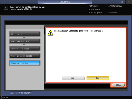 Sélectionnez un élément et appuyez sur [RàZ compteur] pour afficher le dialogue de confirmation. Appuyez sur [Oui] ou [Non] et confirmez le réglage en appuyant sur [Valider].
