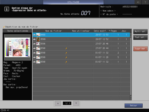 Utilisez cette fonction pour supprimer les tâches enregistrées sur le disque dur.