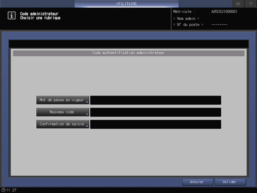 Pour en savoir plus sur la définition du code administrateur, voir Mot de passe admin. : changement du code administrateur et activation de la fonction Authentification administrateur.