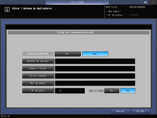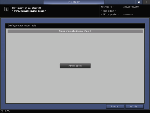 Vous pouvez spécifier la destination de transmission des journaux d'audit ou effectuer la transmission manuelle de journaux d'audit au moment voulu.