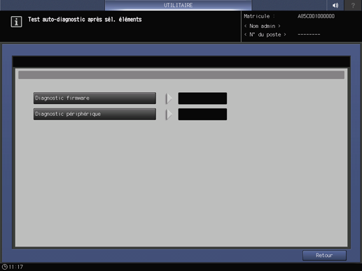 Appuyez sur [Diagnostic firmware] ou sur [Diagnostic périphérique].