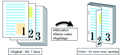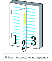 imposition d'un document PDF de 32 pages A4 sur du papier A4 et impression recto-verso, puis finition avec la fonction agrafage.