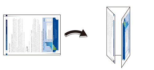Impression recto-verso et finition avec une unité de pliage. Cette section explique l'exécution du pliage en Z, du pliage en trois et de l'encart à volet.