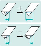 Alignement du recto et du verso (utiliser la mire de test) | Les positions d'impression du recto et du verso sont-elles identiques ? -> Décalage avant, arrière, gauche ou droit : réglage du calage recto-verso | |