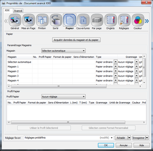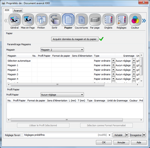 Cliquez sur l'onglet [Papier], puis sur [Acquérir données du magasin et du papier].