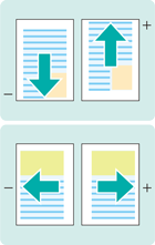 Alignement du recto et du verso (utiliser la mire de test) ![]() | Les positions d'impression du recto et du verso sont-elles identiques ? -> Décalage avant, arrière, gauche ou droit : réglage du décalage d'image | |