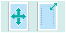 Vous pouvez corriger le défaut d'alignement du recto et du verso de l'impression. Vous avez le choix entre deux méthodes : décaler l'image pour déplacer l'étendue d'impression entièrement ou modifier l'agrandissement horizontal et/ou vertical.