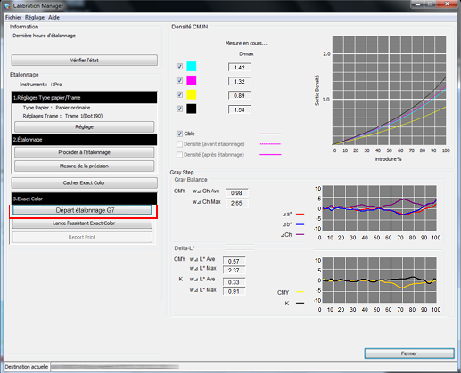 Sur l'écran [Calibration Manager], cliquez sur [Mesure de la précision] sous [3.Etalonnage G7].