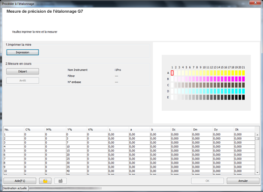 L'écran [Mesure de la précision de l'étalonnage G7] s'affiche.